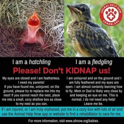 A hatchling is a baby bird that hatches from an egg. They usually don't have feathers, and their eyes are closed. They usually don't have feathers, and their eyes are closed. A fledgling has its first feathers and can move on its own. Their feet can grip a branch, and they have feathers. This bird will leave the nest and learn how to survive without its parents.
